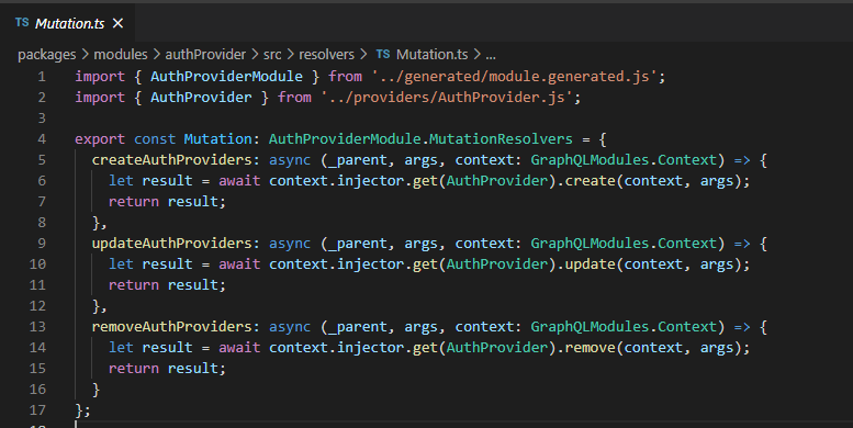 And your Mutations become as simple as this, calling the injector, doing the operations and returning the results: